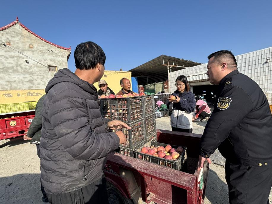 在永康镇一处苹果聚集收购点,工作人员与收购商和果农拉起了家常。“今年80以上规格的红富士多少钱一斤?”“下捡和落地果价格和品质咋样”“咱这批苹果主要运往哪里”刘婷主任接连抛出果农和客商最关心的问题,认真听取客商们对苹果品质、包装设计、物流配套等方面的意见,详细记录不同规格、不同品种苹果的收购价格,对比历年价格走势分析市场规律,更向代办们明确“明码标价、阳光收购”要求,以透明化交易流程打消客商顾虑。为后续针对性开展品牌推广、对接精准客源提供数据支撑。