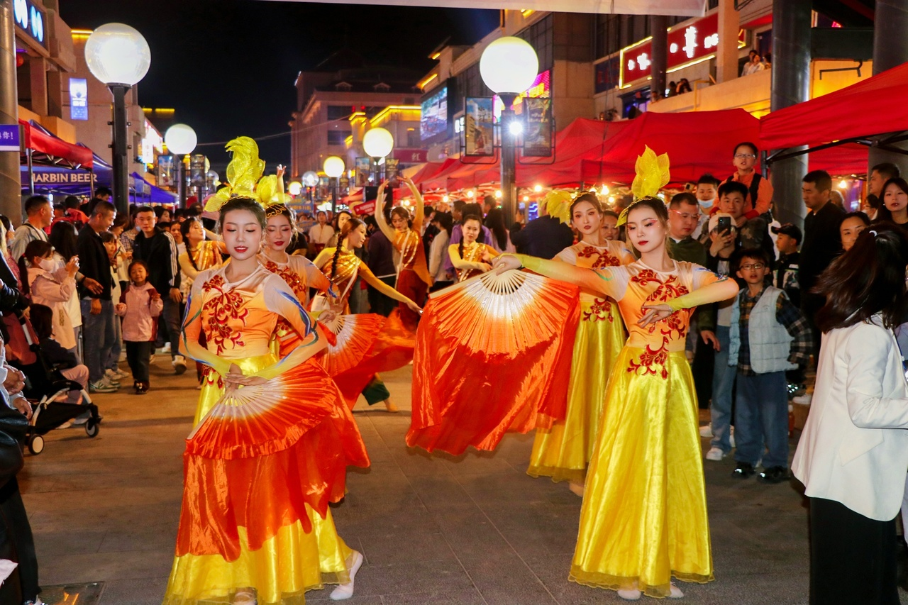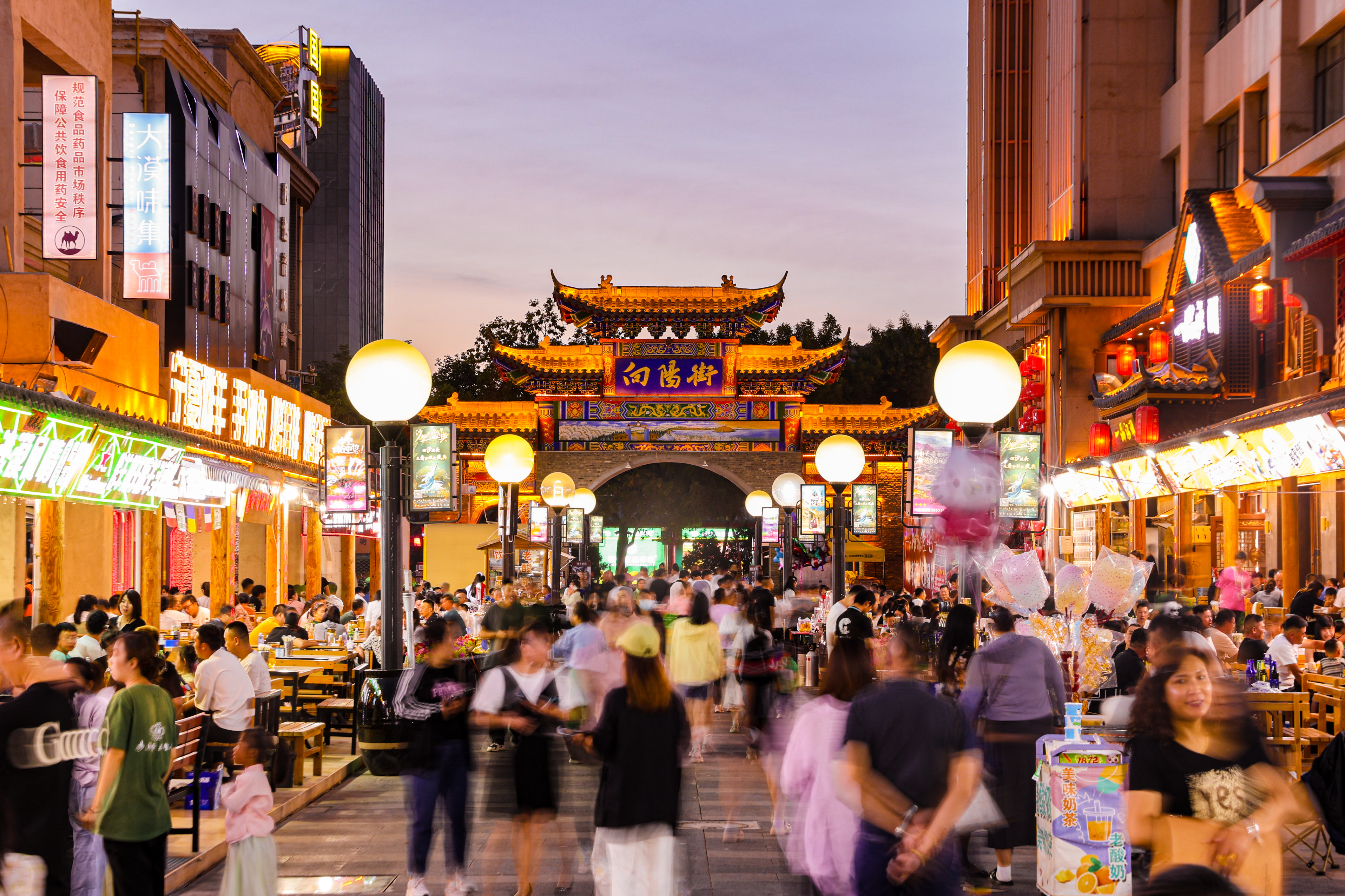 创新业态布局,多元融合激活文旅消费新活力。精准把握文旅融合与夜间经济、假日消费新脉搏,通过业态结构的“加减法”优化调整,不断丰富餐饮、零售、演艺、文创等多元消费场景。目前,街区172家商铺涵盖文化创意、观光体验、餐饮购物、休闲娱乐等多重业态,探索建设宁夏首家非遗手作美术馆“手卫”,打造融合轻食咖啡、文创、餐饮于一体的特色概念店“漠咖”,布设中卫拉条子、蒿子面等多个非遗美食打卡点,配套设置骆驼手办、大麦地岩画、黄河瓷等8个具有城市文化烙印的流动文创售货亭,培育“中卫有礼”城市品牌店、“沙小卫”在地艺术商店等商文旅创新空间,引入大牛远夏、民谣集、黄河印象等青年消费品牌店,解锁多样潮流体验。紧抓夜间经济发展,巧妙融入战鼓点兵、丝绸之舞、王维吟诗等厚重文化元素,常态化开展“遇见沙坡头”主题演艺超100场次,年均发放超1200万元政府消费券,联动商圈举办“万能者大会”等各类促消费活动,以“演艺+非遗+音乐+美食”的多元融合模式,成功构建起夜游、夜娱、夜食、夜购、夜赏五位一体的夜间经济新生态。今年以来,街区已接待游客超248万人次,街区消费同比增长10%,彰显了“一街兴一城”的强劲带动效应。