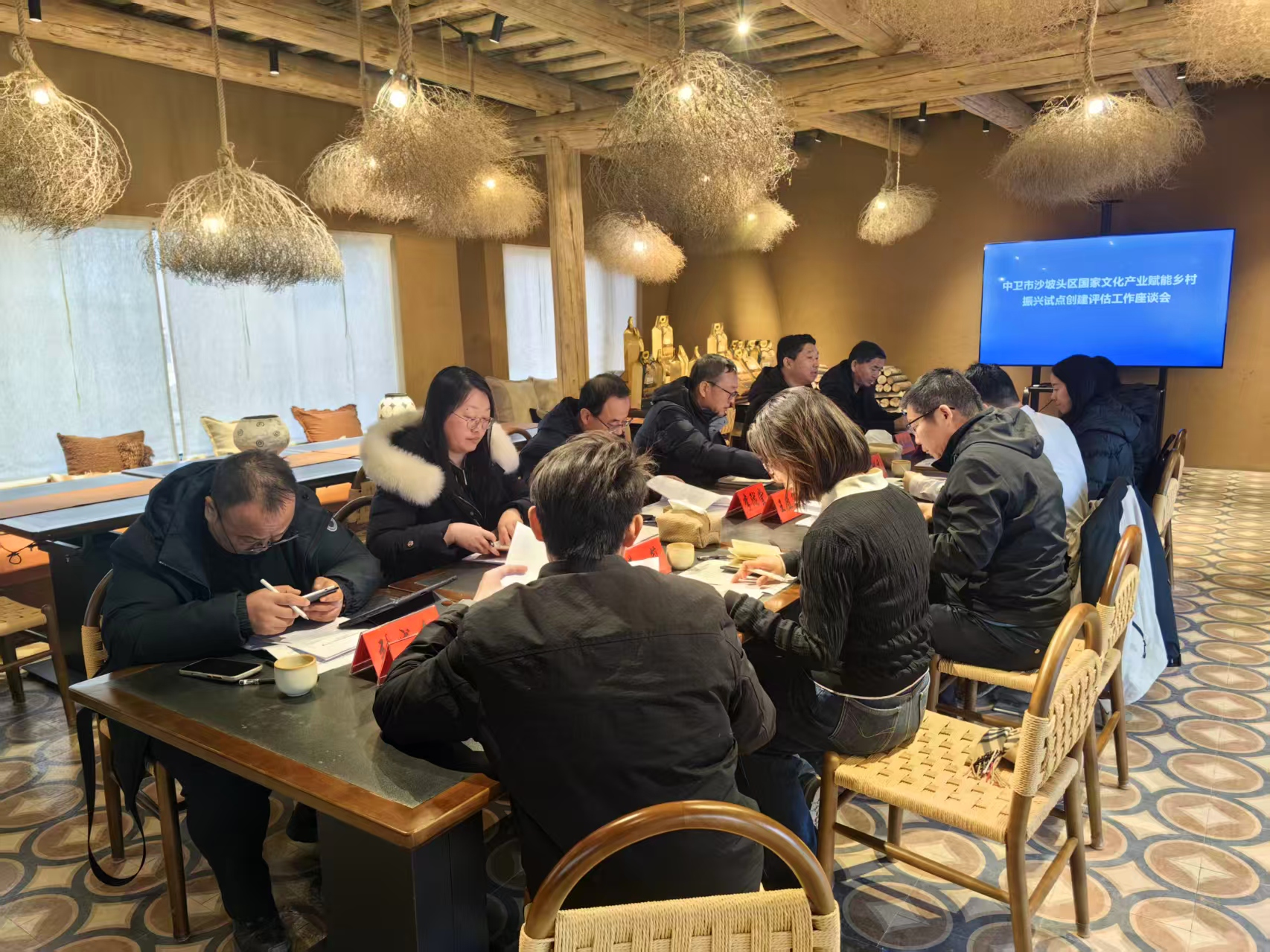 实地考察结束后,评估组召开座谈会,认真听取了沙坡头区关于试点创建工作情况的专题汇报,并就相关工作进行了深入点评与交流。评估组对沙坡头区目前取得的阶段性成效给予肯定,同时围绕进一步深化试点建设、提升赋能实效提出指导性意见。张玉进副厅长对沙坡头区持续巩固试点工作提出四点建议:一要深化文化挖掘与系统梳理,进一步加强对本地沙漠黄河文化、非遗资源、乡土风情的深度挖掘与脉络梳理,推动文化资源向旅游产品、品牌符号转化,夯实文化产业发展的内涵基础;二要健全联农带农与富民机制,必须将带动农民增收、促进共同富裕作为试点工作的核心目标,重点建立健全产业链与农民利益联结机制,引导村民参与文旅经营、就业创业,切实让发展成果惠及更多群众,助力乡村振兴;三要总结提炼可推广的经验模式,鼓励沙坡头区系统总结在文旅融合、产业培育、乡村运营、人才引育、品牌打造等方面的创新做法与有效路径,形成具有示范意义的“沙坡头模式”;四要探索金融支持产业发展机制,建议结合试点工作实际,积极探索符合文旅产业特点的金融支持政策与产品,拓宽融资渠道,强化要素保障,助力文化产业可持续、市场化发展。