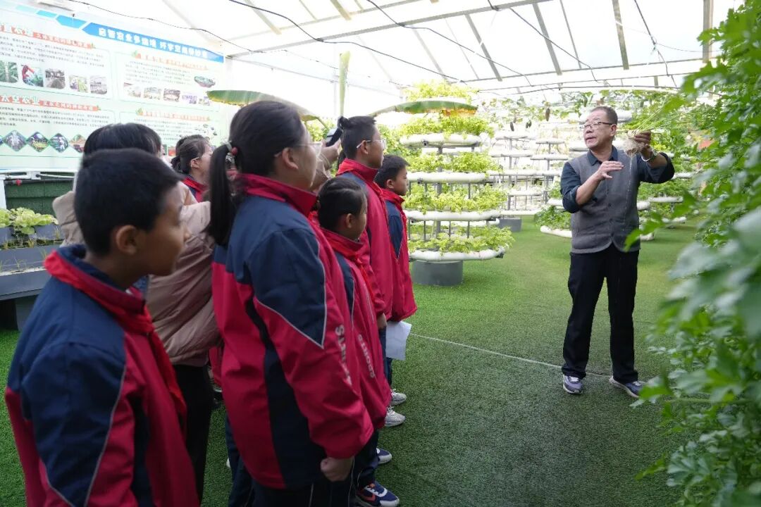 中卫九小副校长王俊峰介绍,学校依托“绿韵融生园”,常态化分层开展特色教学活动:一、二年级学生通过教师讲授、亲身体验植物种植与养护,初步建立对植物习性及农业生产系统的认知;三、四年级学生则聚焦无土栽培、智能灌溉、立体栽培等现代农业科技,同步开展种植日记撰写、种植成果展示和分享等实践活动;五、六年级学生以项目化学习为载体,开展农产品美食制作、农业主题环保实践、农业课题研究等活动,全方位拓展孩子们对农业领域的多元认知。