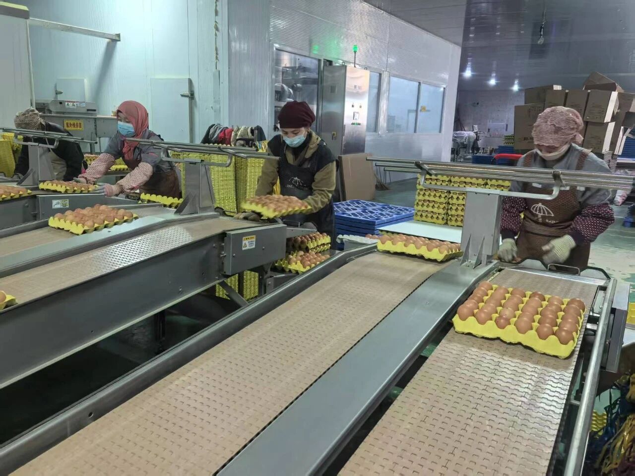 作为镇域蛋鸡产业标杆,宁夏富瑞生农业发展有限公司成立于2016年,是自治区农业产业化龙头企业、国家级科技型中小企业。企业打造50万只现代化蛋鸡生态养殖园,现饲养蛋鸡40万只,配套年产能1.2亿个蛋托自动化生产线。从喂料、环控到集蛋全流程智能化,产出的鸡蛋以“大漠金凤”品牌畅销西北五省。“目前,我们公司日产蛋量可达36万枚,2025年,鸡蛋销量5000余吨,综合销售收入超5000万元。”公司负责人郭鹏说。企业在自身发展的同时,积极输出智慧养殖模式与技术服务,带动周边养殖户提质增效,推动蛋鸡养殖从“靠经验”向“靠数据”转变,有效提升区域蛋品质量与市场竞争力。