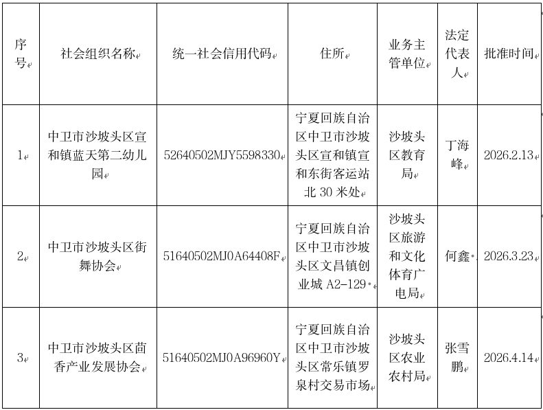 2026年沙坡头区社会组织注销公告 (第一批次)