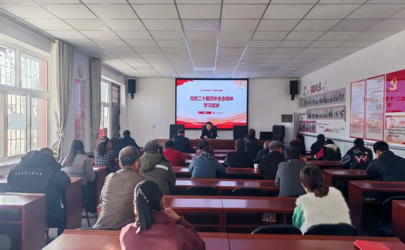 12月1日,沙坡头区副区长马月芳同志深入香山乡景庄村宣讲党的二十届四中全会精神。景庄村包村干部、村“两委”班子成员、党员、村民代表、群众等40余人参加。