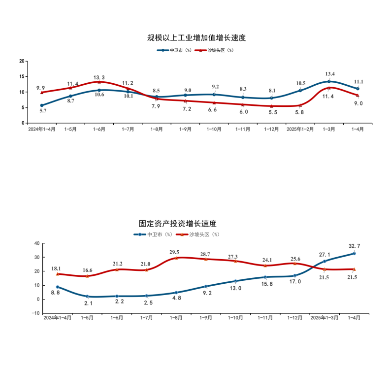 沙坡头区统计局:沙坡头区2025年1-4月主要经济指标走势图