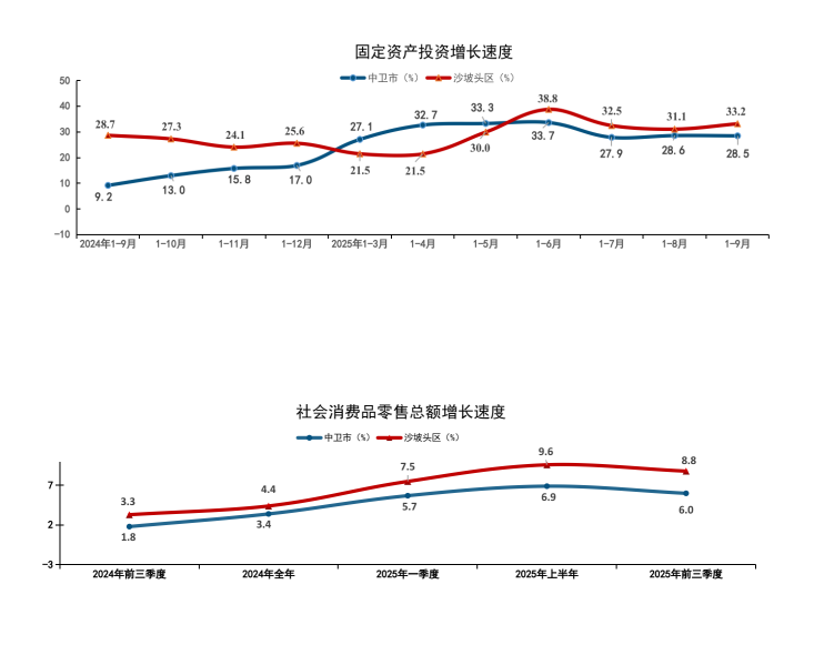 沙坡头区统计局:沙坡头区2025年前三季度主要经济指标走势图