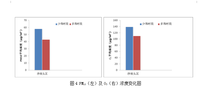 沙坡头区8月16日~9月25日较6月10日~8月15日PM10平均浓度降低23% , O3平均浓度降低20% (图4)