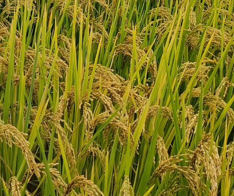 4月中旬气温偏高、热量充足有利于旱直播水稻播种,4月下旬到5月上旬气温偏低、降水偏多,整体天气条件不利于旱直播水稻出苗,受5月上旬连阴雨天气影响,水稻移栽较去年推迟10天左右;5月中、下旬至气温偏高,日照充足,水稻于5月20日出苗,于5月28日达到三叶普遍期,较历年推迟4天。6月下旬-7月中旬出现了连续的高温天气,特别是7月5-10日出现了持续6天的高温天气,有利于水稻分蘖和拔节,水稻于7月17日达到拔节普遍期,秧苗长势良好。8月末和9月上旬出现的降水天气对水稻灌浆有利,于9月下旬开始收获。总体气象条件有利于水稻生长发育。